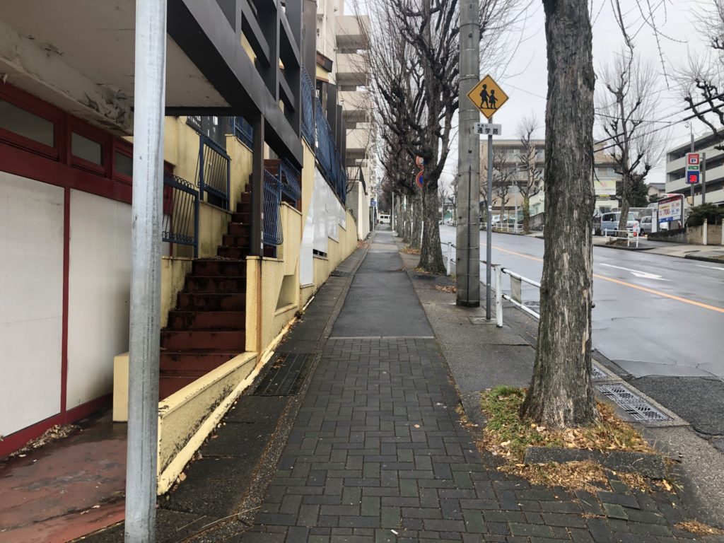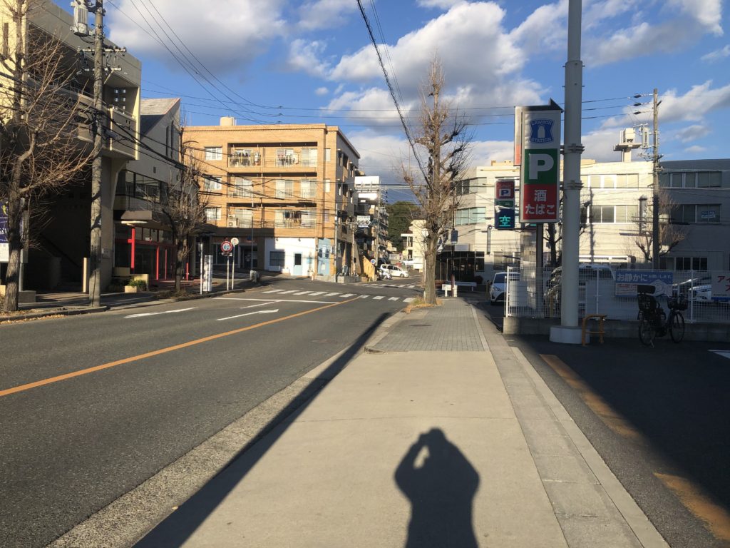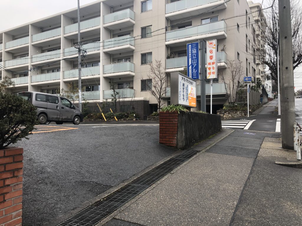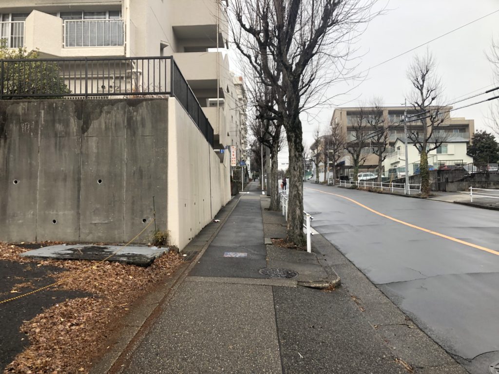 白い壁のマンションが左手に見えてきました!