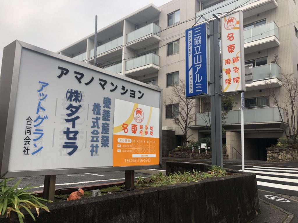 「名東鍼灸接骨院」の看板がみえましたね!